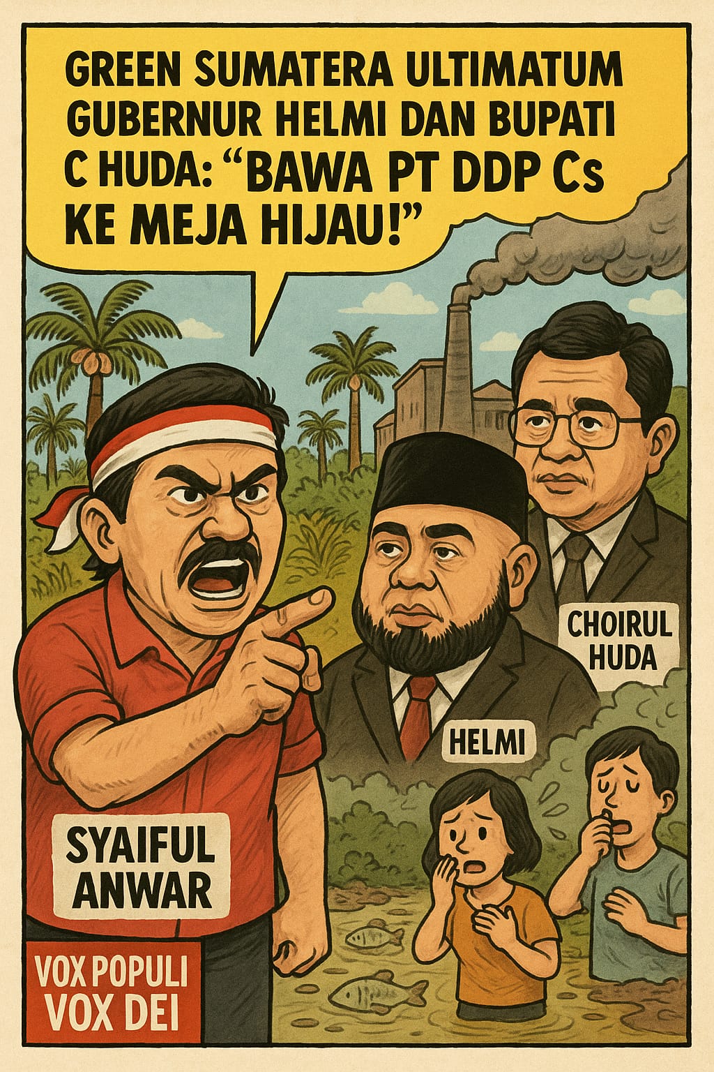 “Kalau slogan Bantu Rakyat cuma di spanduk, rakyat bosan. Bantu rakyat itu tutup PT DDP, paksa ganti rugi, bongkar mafia sawit, seret ke pengadilan. Pecat pejabat yang main mata!” tegas Syaiful.