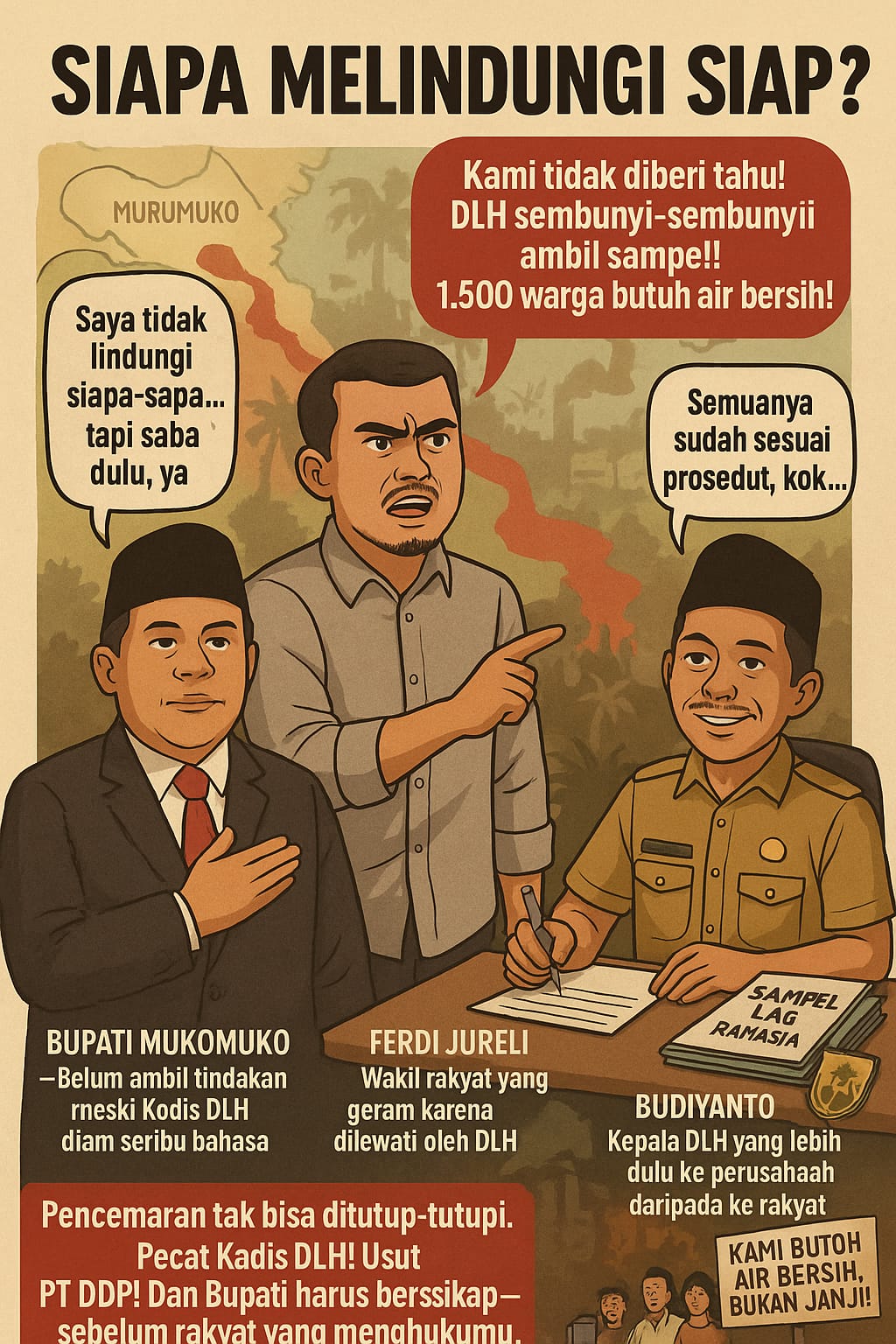 Kini, masyarakat menanti bukan sekadar janj, tetapi keputusan politik yang berpihak pada rakyat. Bupati Mukomuko harus pecat Kadis DLH hari ini, atau bersiap dikenang sebagai pemimpin yang berdiri di barisan perusahaan, bukan rakyatnya.