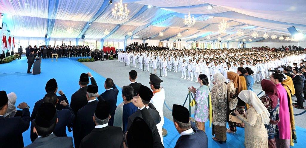 Presiden Prabowo Subianto melantik 961 kepala daerah dari seluruh Indonesia yang digelar serentak di Istana Kepresidenan Jakarta pada Kamis, 20 Februari 2025. Foto/Dok: MC
